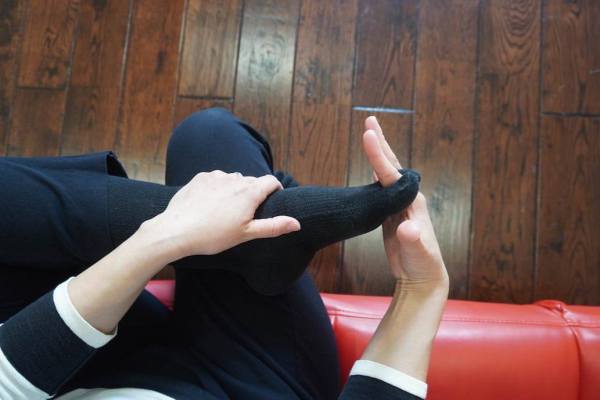 ↑これは、NGの足の組み方です。 指がズボッとはいっている