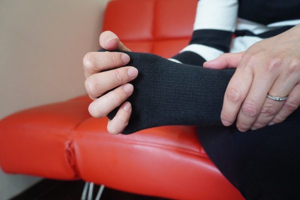 (ひじでの加圧と違い)  手首でギュッとしている状態です。