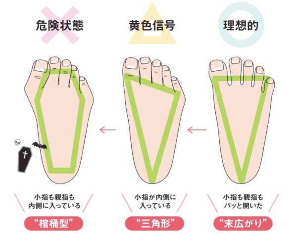 三角形の足や棺桶型の足では、